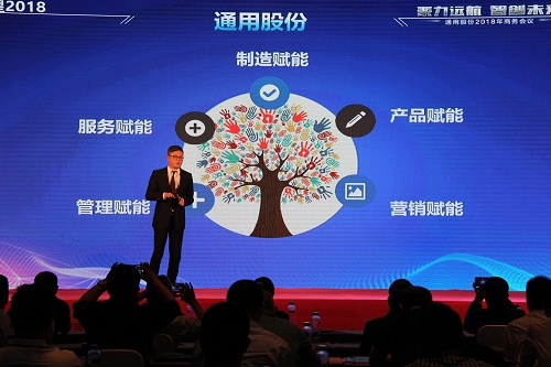 通用股份董事長(zhǎng)顧萃先生在會(huì)議上作了“賦能2018”的重要主題演講?;厥?017,顧董對(duì)宏觀(guān)經(jīng)濟(jì)和行業(yè)情況進(jìn)行了生動(dòng)解讀。展望2018,顧董以“大、新、快、鏈”四個(gè)字闡述了當(dāng)下時(shí)代的發(fā)展趨勢(shì),探討了智能化以及創(chuàng)新思維對(duì)未來(lái)工業(yè)和生活的深遠(yuǎn)影響。通用股份將從“制造、產(chǎn)品、營(yíng)銷(xiāo)、管理、服務(wù)”五大賦能促進(jìn)變革發(fā)展,搶占先發(fā)優(yōu)勢(shì),智能制造升級(jí),全球化視野布局,全方位提高效率,做最好的自己。