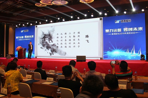 榮成市隆通貿(mào)易有限公司總經(jīng)理張黎明在大會(huì)上作了題為“騰飛 2018”的主題演講,他從定位、服務(wù)、客戶(hù)管理三個(gè)渠道入手,向與會(huì)者分享了成功的營(yíng)銷(xiāo)經(jīng)驗(yàn)和營(yíng)銷(xiāo)體系構(gòu)建案例,為代表們?nèi)蘸笤谑袌?chǎng)上攻城拔寨提供了可實(shí)施性的參考經(jīng)驗(yàn)。