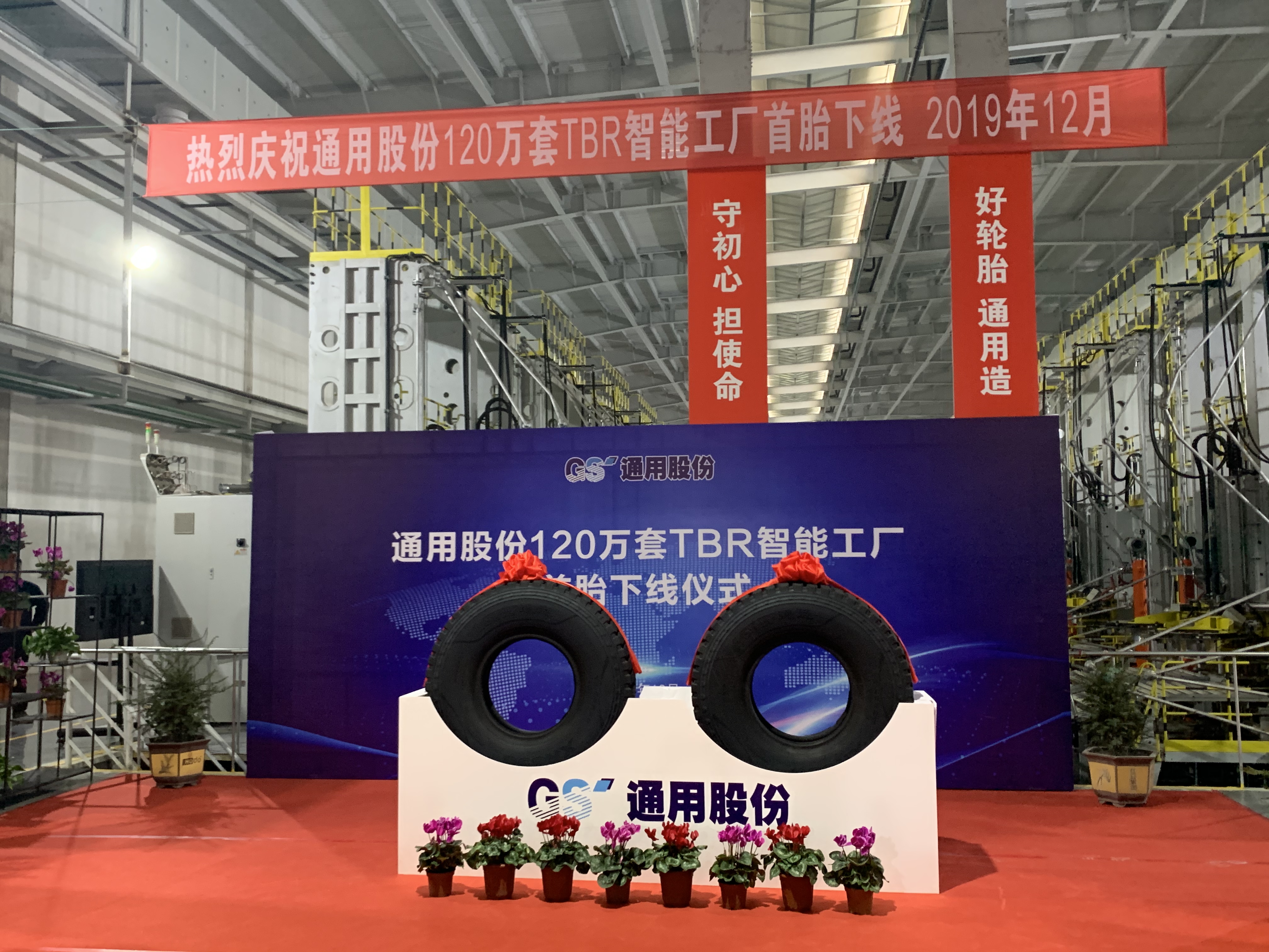 12月27日上午,通用股份120萬套TBR智能工廠首條全鋼子午線輪胎正式下線。下線首胎為通運 12.00R20—XR856。通用股份董事長顧萃,常務副總經(jīng)理程金元、生產(chǎn)板塊總經(jīng)理虞秀鳳等領導出席了本次儀式。
