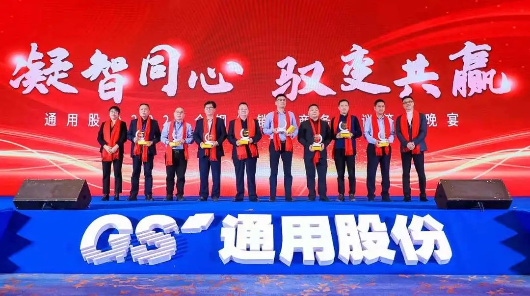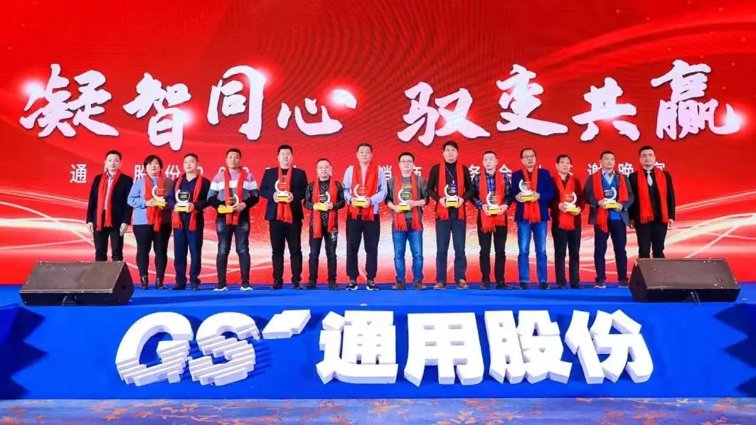 唯創(chuàng)新者強,唯進化者勝。本次會議隆重表彰了為通用股份發(fā)展貢獻力量的經(jīng)銷商合作伙伴,晚宴現(xiàn)場頒發(fā)了2020年度潛力經(jīng)銷商獎、先進經(jīng)銷商獎、優(yōu)秀經(jīng)銷商獎、杰出經(jīng)銷商獎等獎項。他們以高昂的斗志馳騁跨越,在商海的競爭中勇立潮頭,乘風(fēng)破浪,他們是通用股份親密無間的合作伙伴,一座座獎杯記錄了他們的榮譽和付出,會議現(xiàn)場氣氛不斷推向高潮!