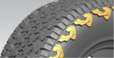 采用高耐磨橡膠和填充增強體系有效抵御惡劣路況行駛中的外部損傷,同時還能提高車輛泥地和沙地行駛的牽引性。
