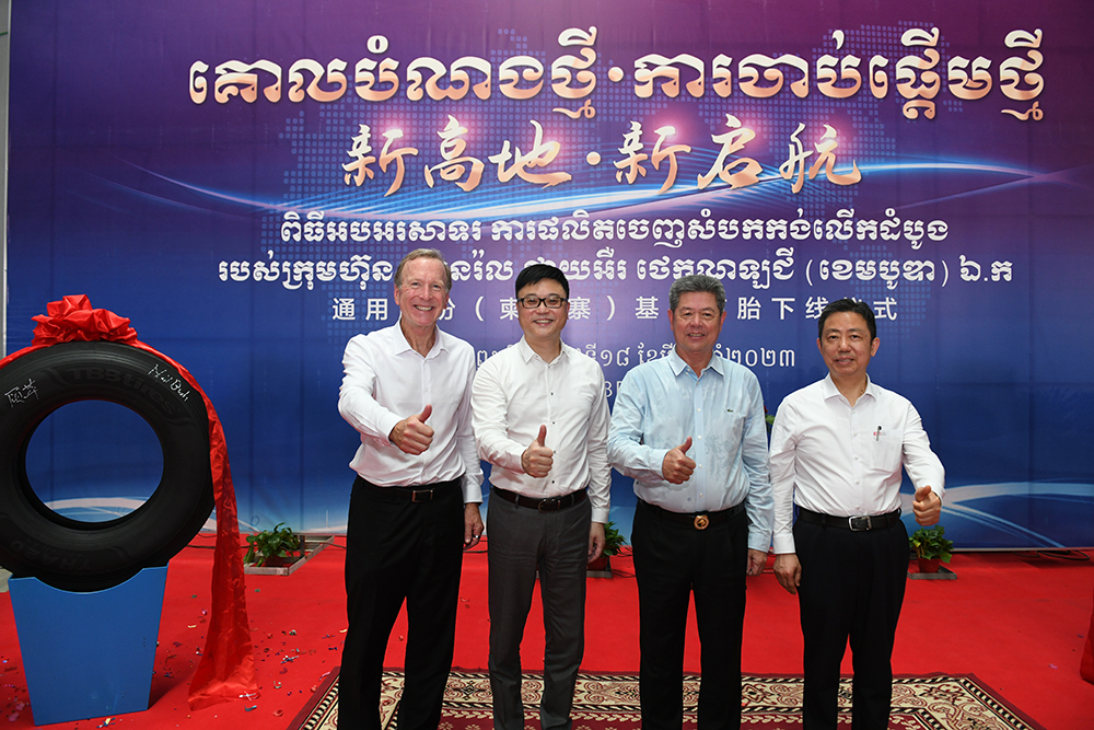2023年5月22日,奮進新高地 啟航新征程——通用輪胎科技(柬埔寨)有限公司開業(yè)慶典在柬埔寨西港經(jīng)濟特區(qū)隆重舉行。柬埔寨首相洪森親臨現(xiàn)