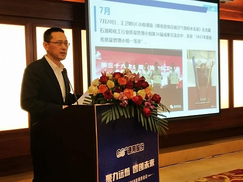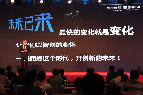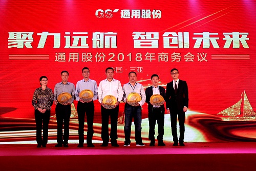 通用股份董事長(zhǎng)顧萃先生在會(huì)議上作了“賦能2018”的重要主題演講?;厥?017,顧董對(duì)宏觀(guān)經(jīng)濟(jì)和行業(yè)情況進(jìn)行了生動(dòng)解讀。展望2018,顧董以“大、新、快、鏈”四個(gè)字闡述了當(dāng)下時(shí)代的發(fā)展趨勢(shì),探討了智能化以及創(chuàng)新思維對(duì)未來(lái)工業(yè)和生活的深遠(yuǎn)影響。通用股份將從“制造、產(chǎn)品、營(yíng)銷(xiāo)、管理、服務(wù)”五大賦能促進(jìn)變革發(fā)展,搶占先發(fā)優(yōu)勢(shì),智能制造升級(jí),全球化視野布局,全方位提高效率,做最好的自己。