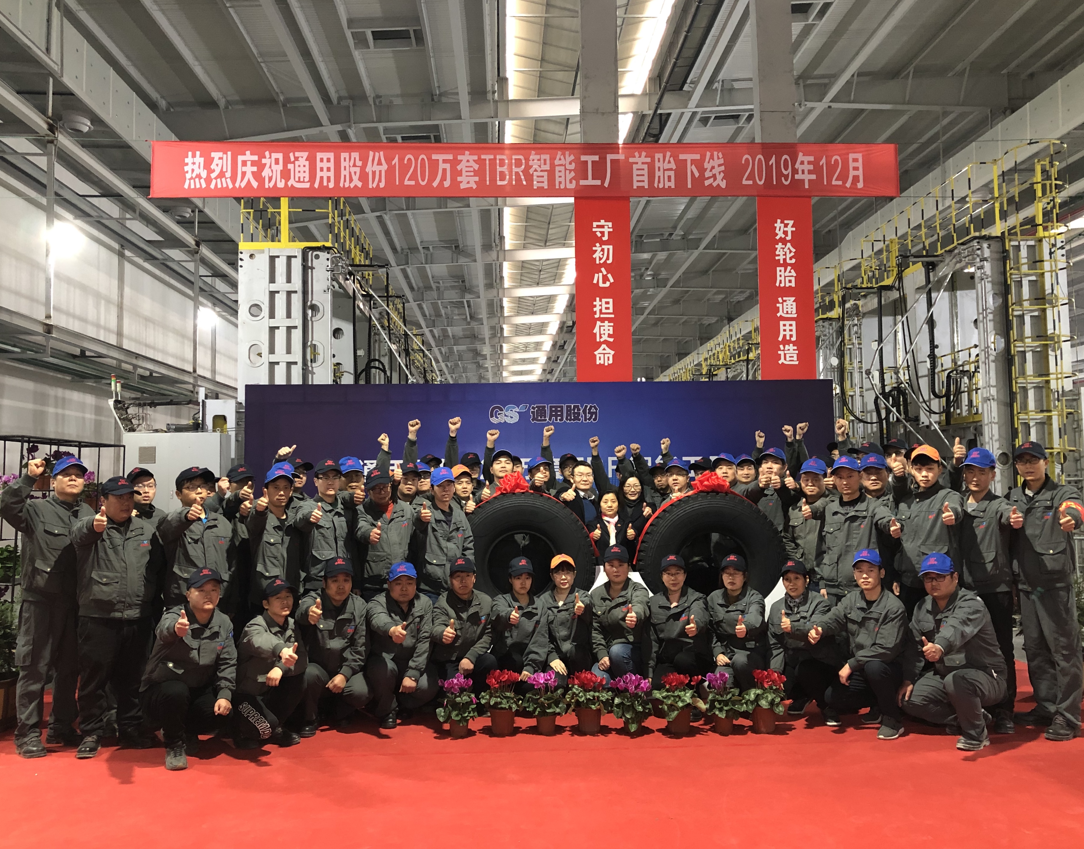 12月27日上午,通用股份120萬套TBR智能工廠首條全鋼子午線輪胎正式下線。下線首胎為通運 12.00R20—XR856。通用股份董事長顧萃,常務副總經(jīng)理程金元、生產(chǎn)板塊總經(jīng)理虞秀鳳等領導出席了本次儀式。
