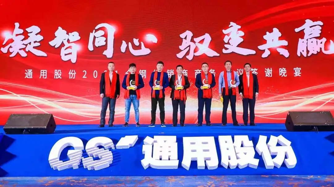 唯創(chuàng)新者強,唯進化者勝。本次會議隆重表彰了為通用股份發(fā)展貢獻力量的經(jīng)銷商合作伙伴,晚宴現(xiàn)場頒發(fā)了2020年度潛力經(jīng)銷商獎、先進經(jīng)銷商獎、優(yōu)秀經(jīng)銷商獎、杰出經(jīng)銷商獎等獎項。他們以高昂的斗志馳騁跨越,在商海的競爭中勇立潮頭,乘風(fēng)破浪,他們是通用股份親密無間的合作伙伴,一座座獎杯記錄了他們的榮譽和付出,會議現(xiàn)場氣氛不斷推向高潮!